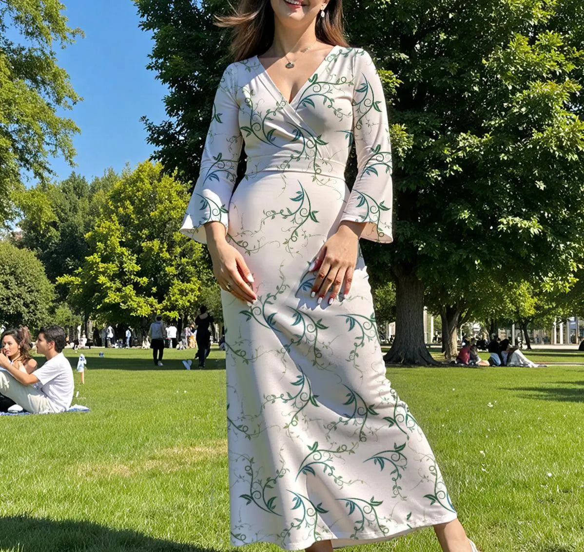 This eye-catching printed maxi dress combines comfort with bold style, sure to turn heads. Made from luxuriously soft milk silk, the dress features a flattering V-neckline, long sleeves and a slightly flared hem for a flattering silhouette. Perfect for casual parties, themed events or everyday wear. Lightweight and breathable, the fabric feels silky to the touch, providing all-day comfort without sacrificing style.