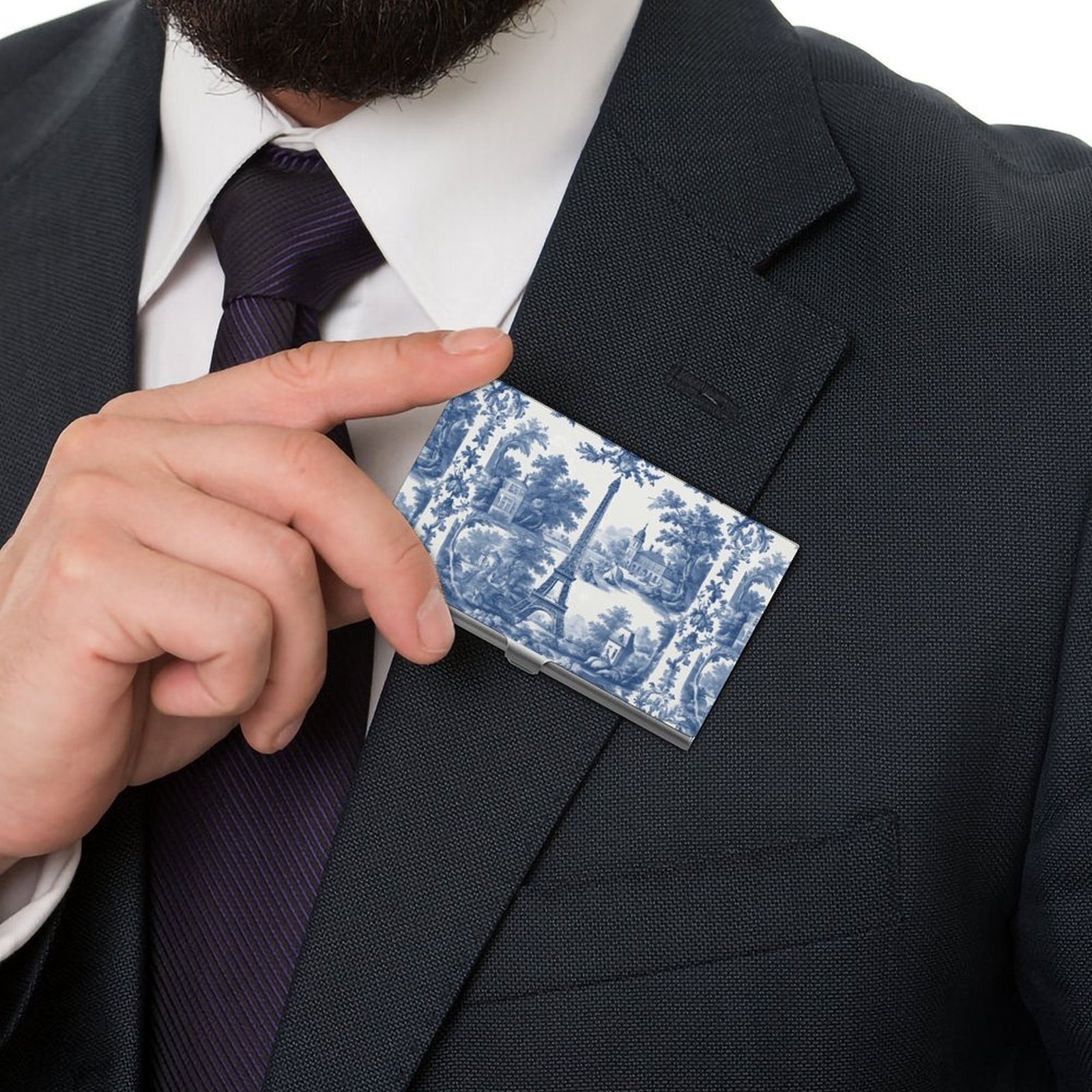 Keep your cards stylishly safe with this Blue and White French Toile Business Card Holder. Crafted from durable aluminum alloy, it shields your cards from scratches and spills while adding a vintage French flair to your everyday essentials. Its smooth, rounded edges protect your fingers, and the spacious interior holds plenty of cards—perfect for professionals who want to stand out with a touch of classic charm. Whether for business or a chic weed case, this playful, eye-catching design brings a bit of French elegance wherever you go.