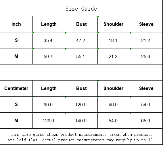 | Centimeter | Length | Bust | Shoulder | Sleeve |
