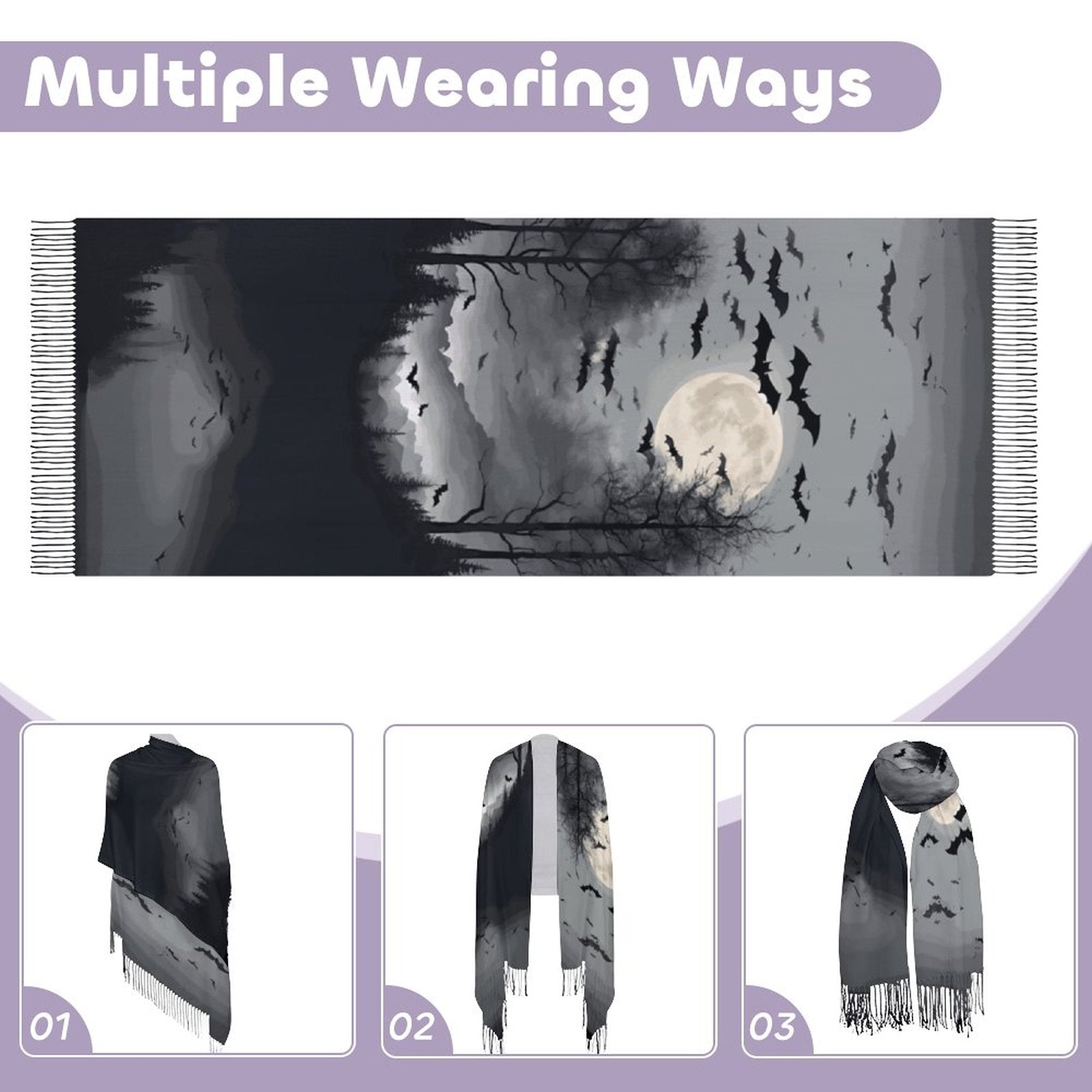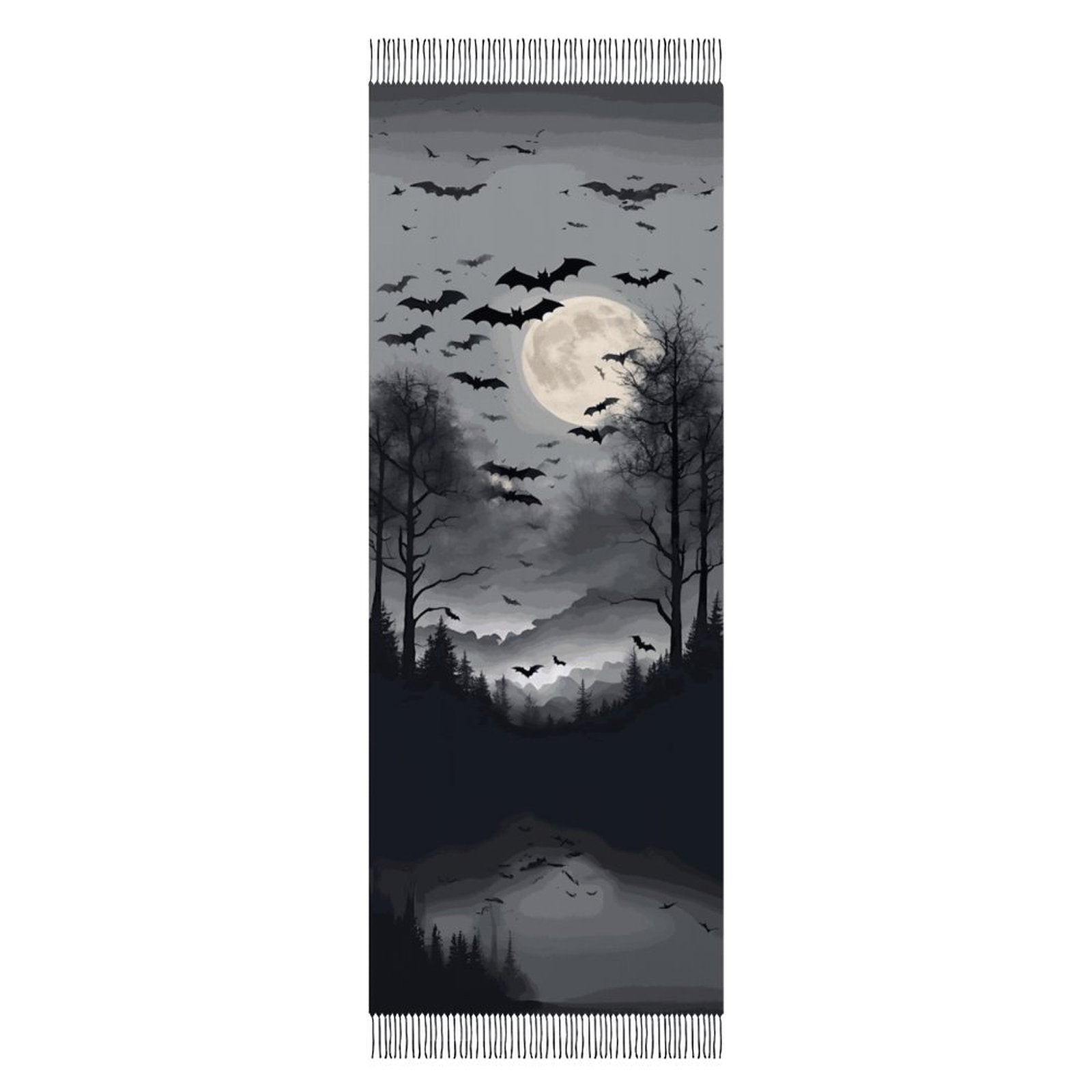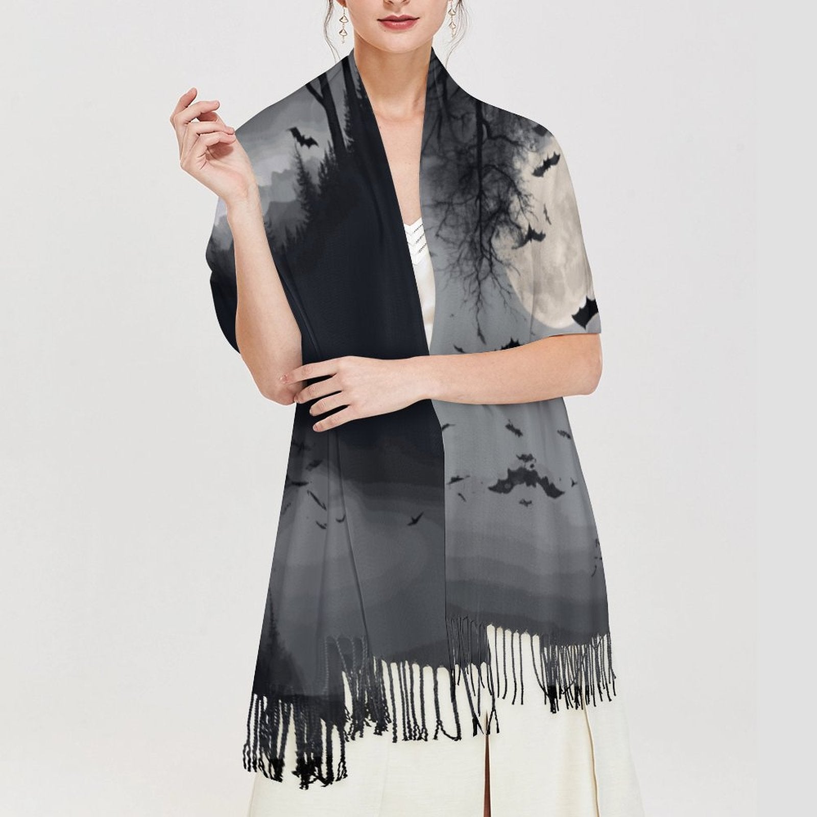 Cloud of Bats in Full Moon Cashmere-like Tassel Scarf (All-Over Printing)