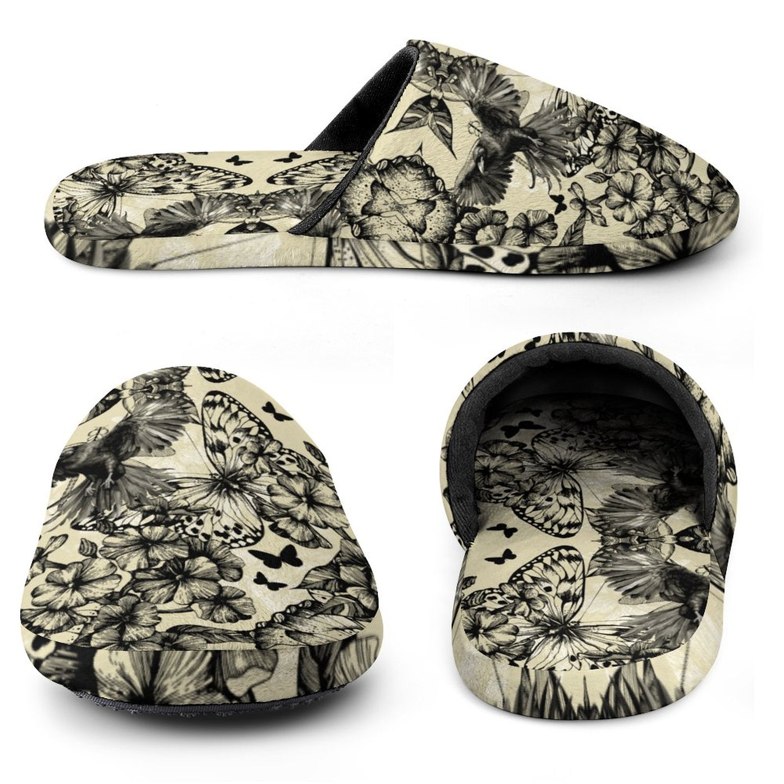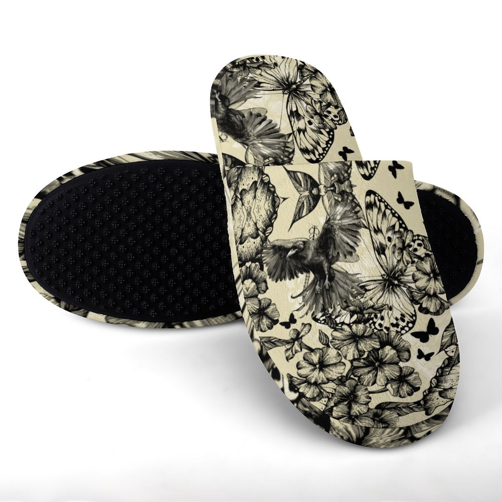 Crows and Butterflies Flannel Ladies Cotton Slippers