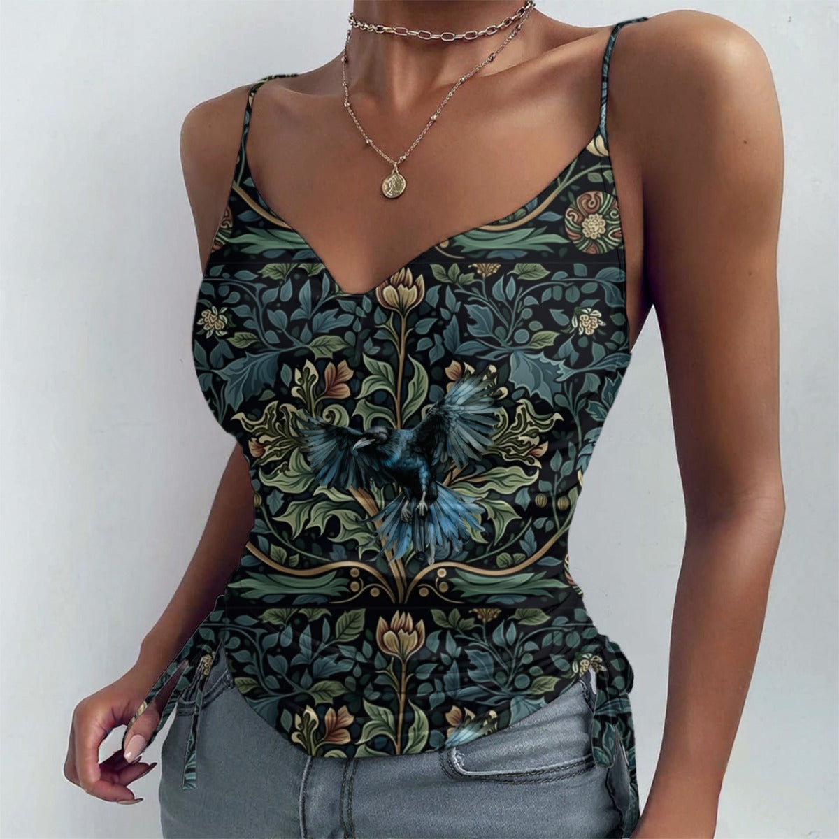 Dark Academia Crow Drawstring Camisole - William Morris Inspired Gothic Clothing