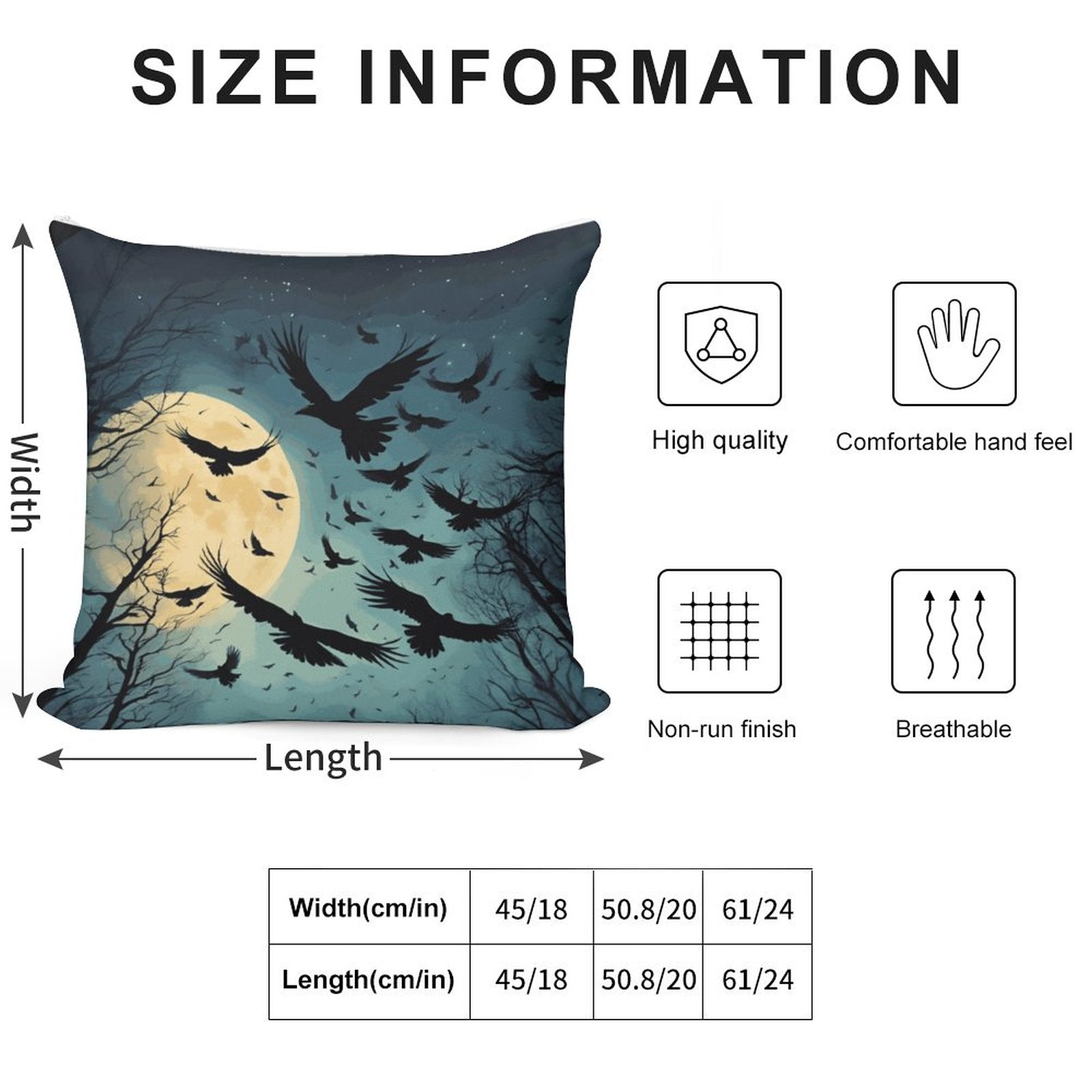 Gothic Moonlit Crow Pillowcases – A 2-Piece Set Offering Dreamy, Ultra-Soft Comfort for a Cozy and Enchanting Sleep Experience Under the Celestial Night Skies! Transform your bedroom into a whimsical retreat with these intricately designed pillowcases, featuring mysterious crows silhouetted against a luminous moon. The luxurious fabric ensures a gentle touch, enhancing your relaxation and inviting you to drift off into a world of serene dreams. Perfect for those who cherish the allure of the night and the charm of Gothic aesthetics, these pillowcases are more than just a bedding accessory—they are a gateway to a magical night’s rest.