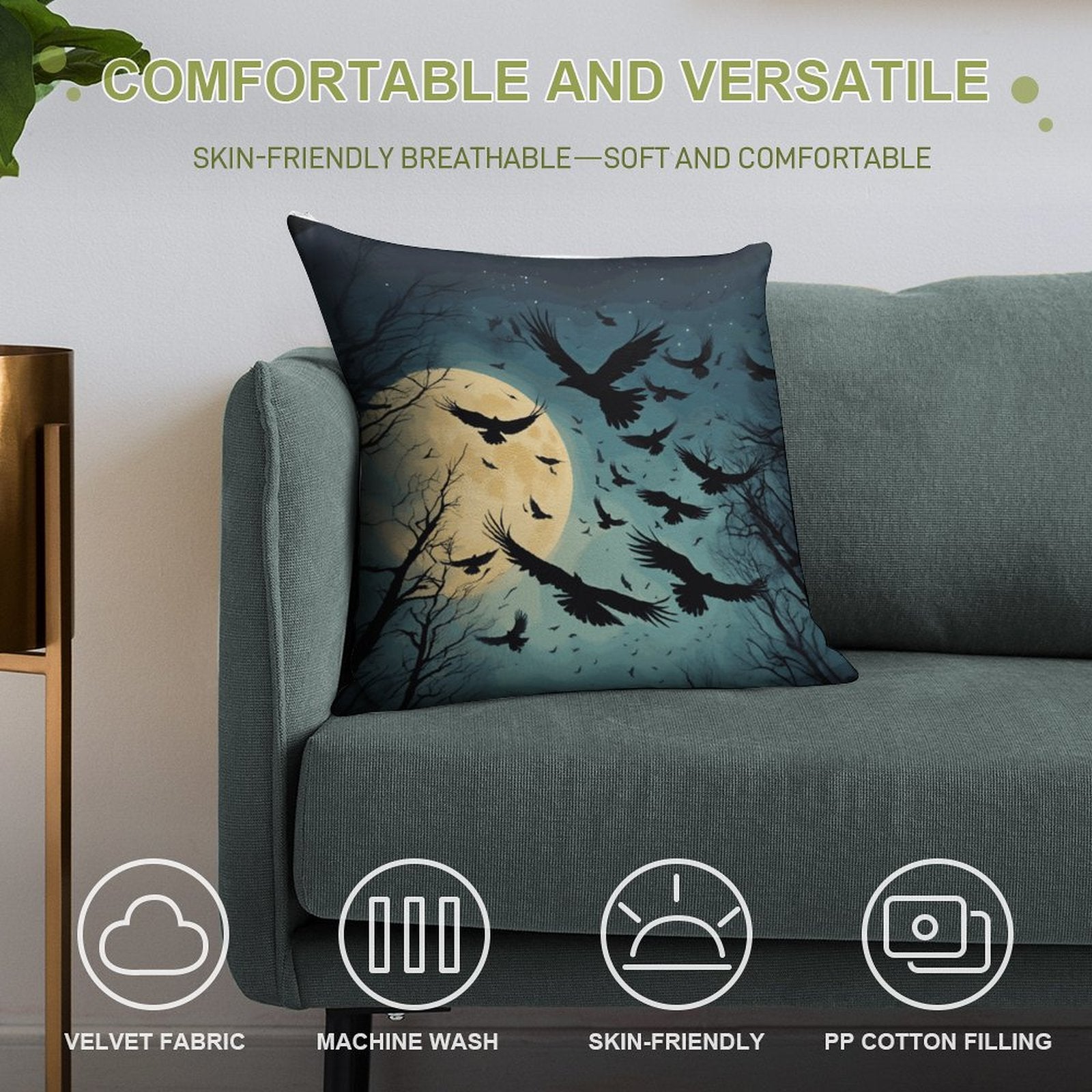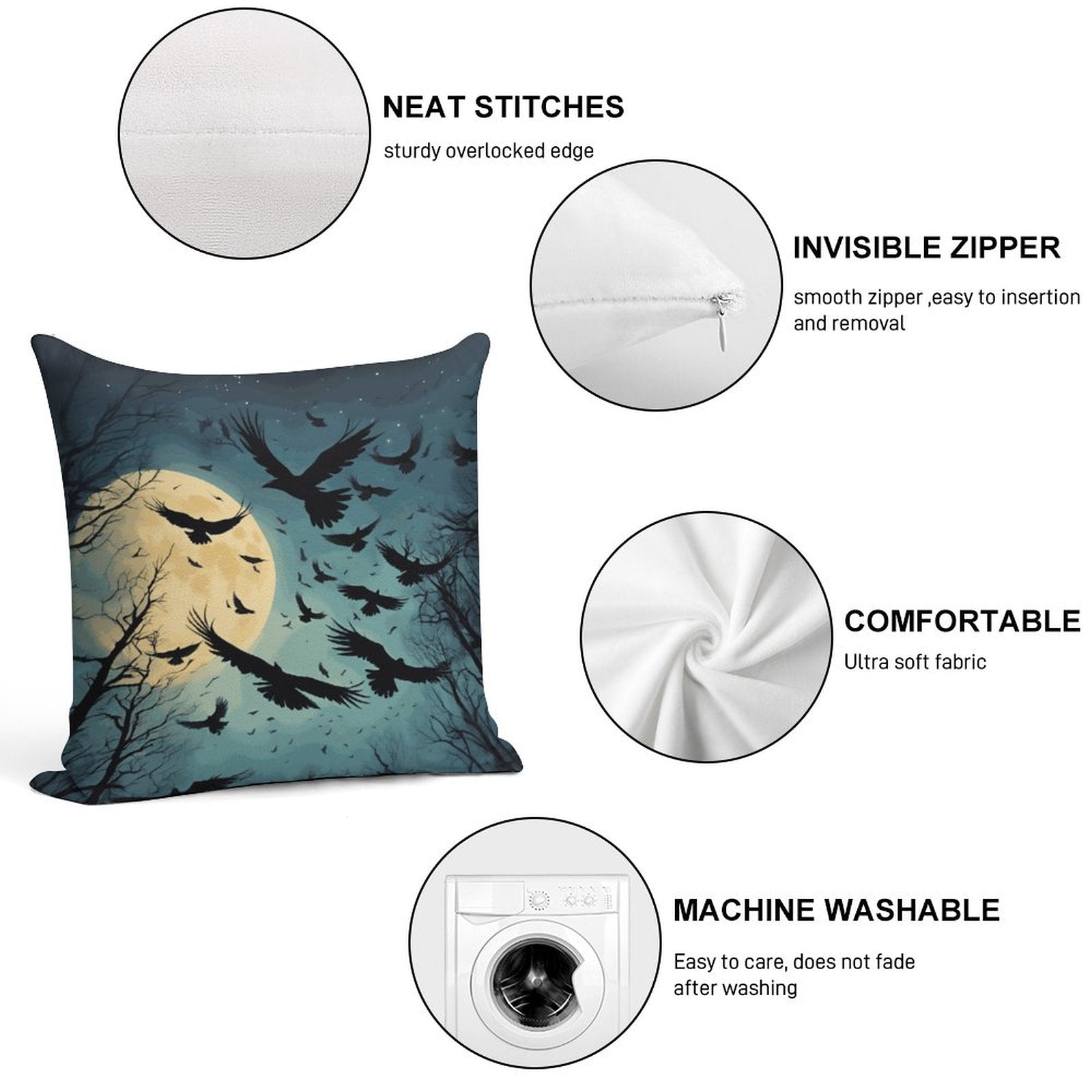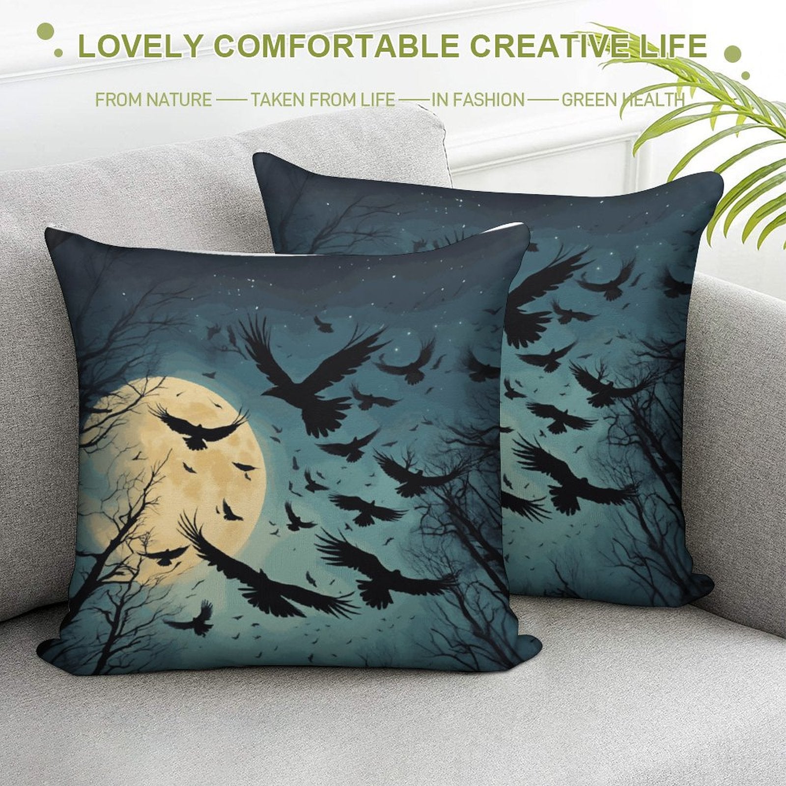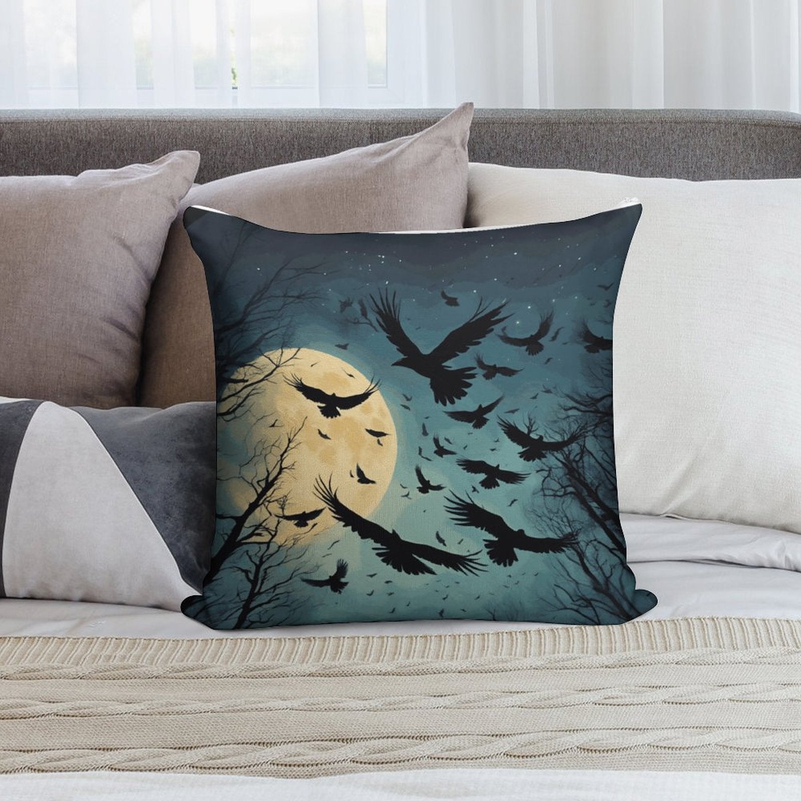 Dark Academia Full Moon Crow Throw Pillowcases