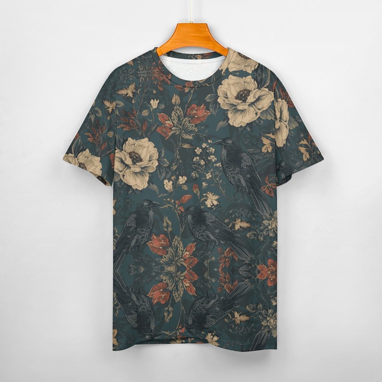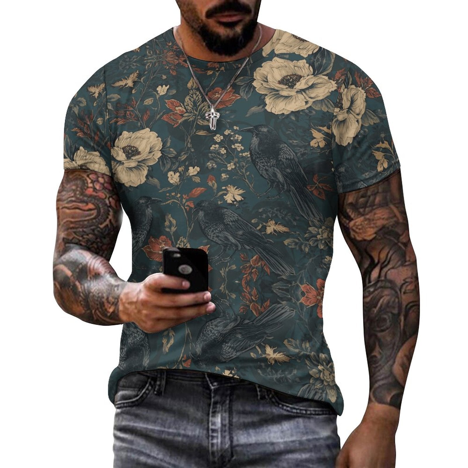 Dark Crow and Floral Cotton Comfort Short-Sleeve T-Shirt