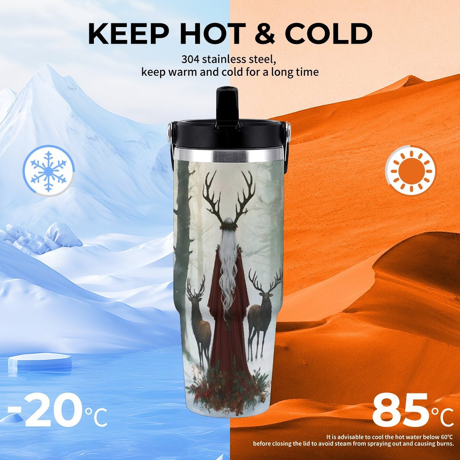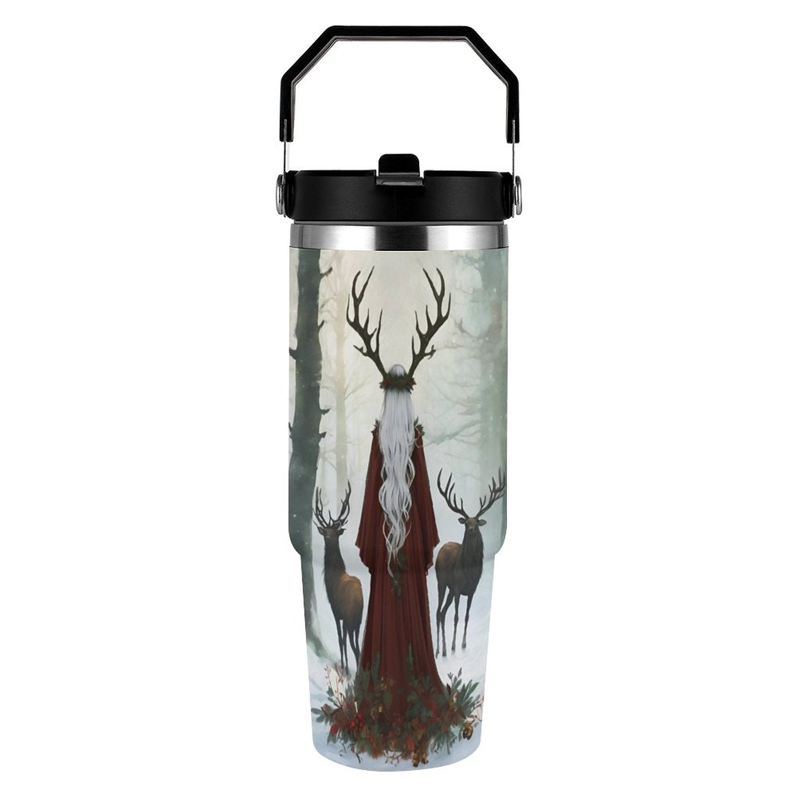 Elen of the Ways 30oz Car Cup with Handle - Yule Witch Sipper of Sorcery, Perfect for Enchanting Your Holiday Travels! Whether you're journeying through mystical winter landscapes or simply heading to your family's festive gathering, this cup is designed to make your travels more magical and enjoyable. With its large capacity and easy-to-hold handle, it ensures you stay refreshed and enchanted throughout your journey. Embrace the spirit of the season with this enchanting accessory that's as practical as it is mystical!