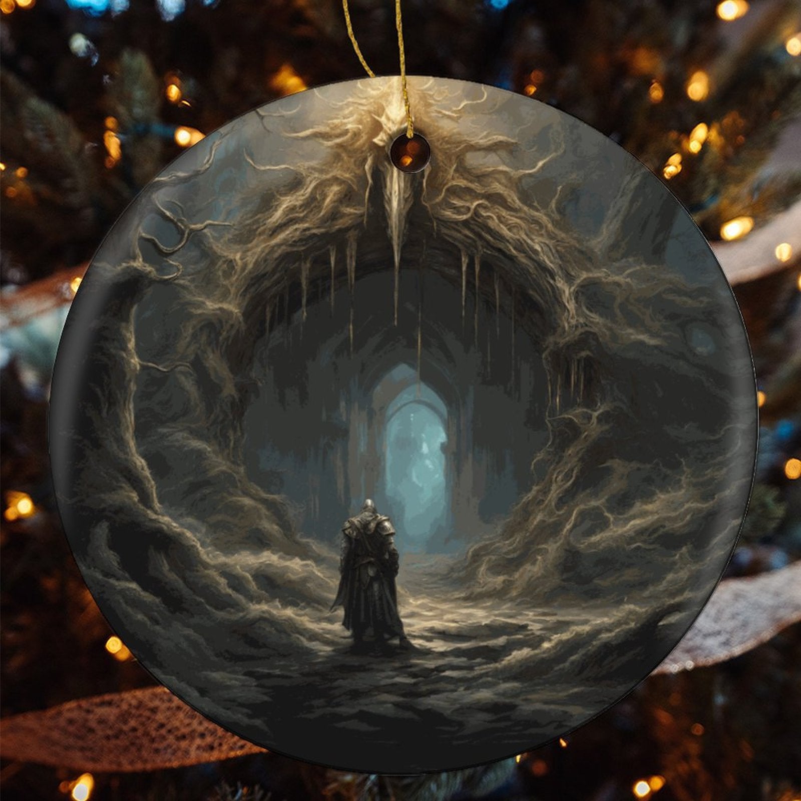 Fantasy Elden Ring Warrior Round Christmas Ceramic Ornament, Fantasy Elden Ring Warrior Christmas Ceramic Ornament, malenia elden ring, elden ring art, elden ring gamer merch, dark souls, bloodborne