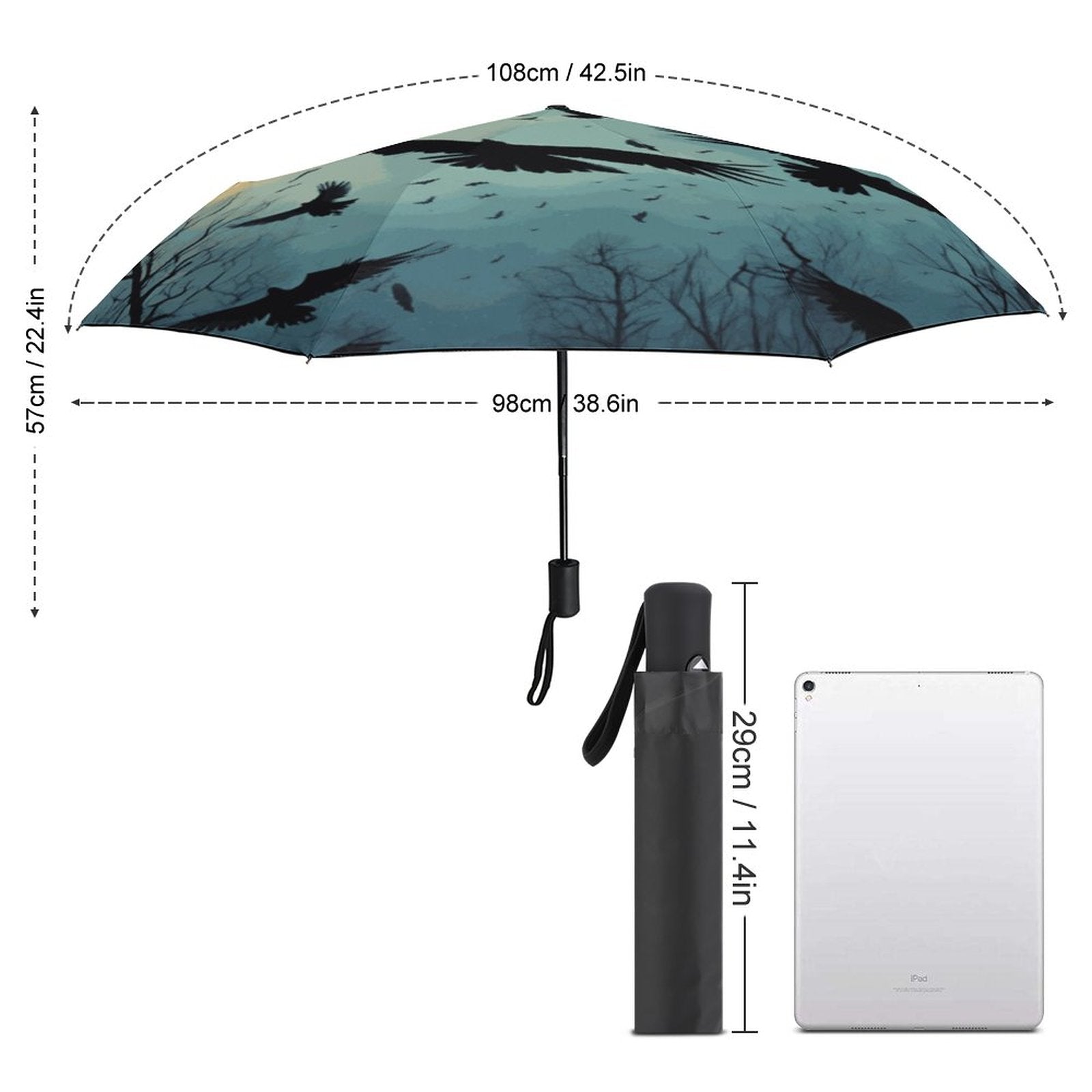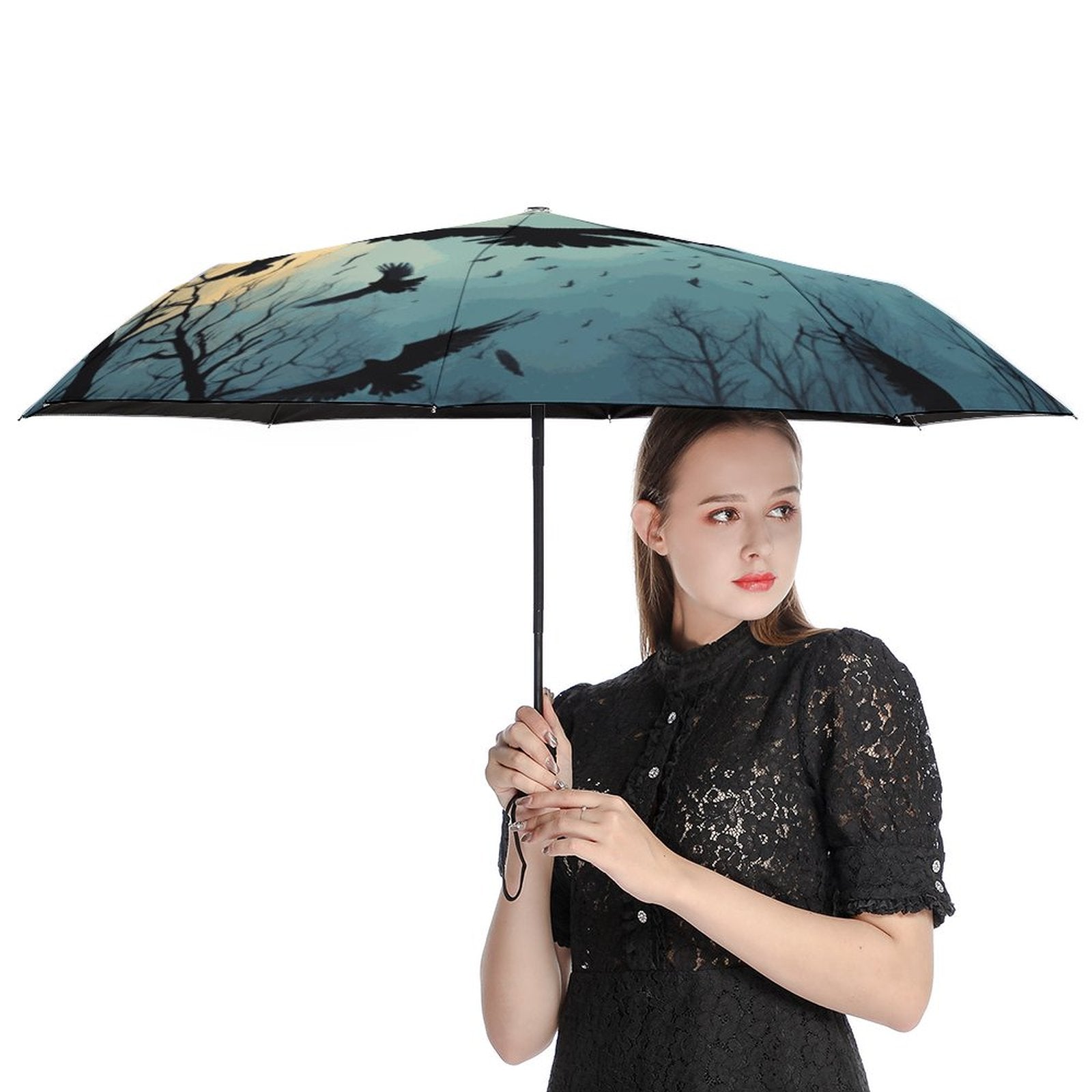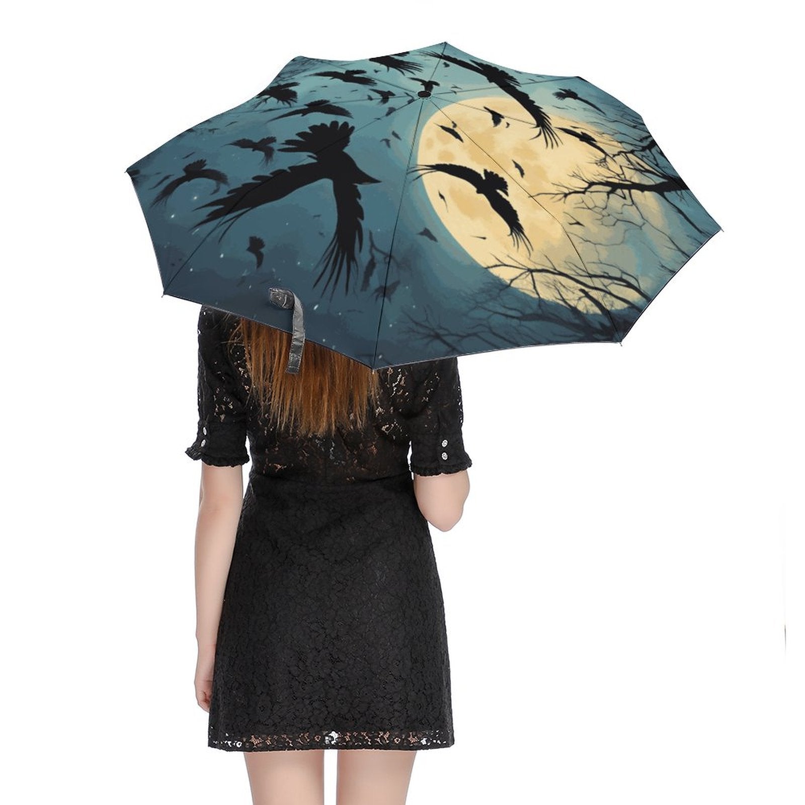 Full Moon Crow Auto Umbrella, Dark Academia Decor