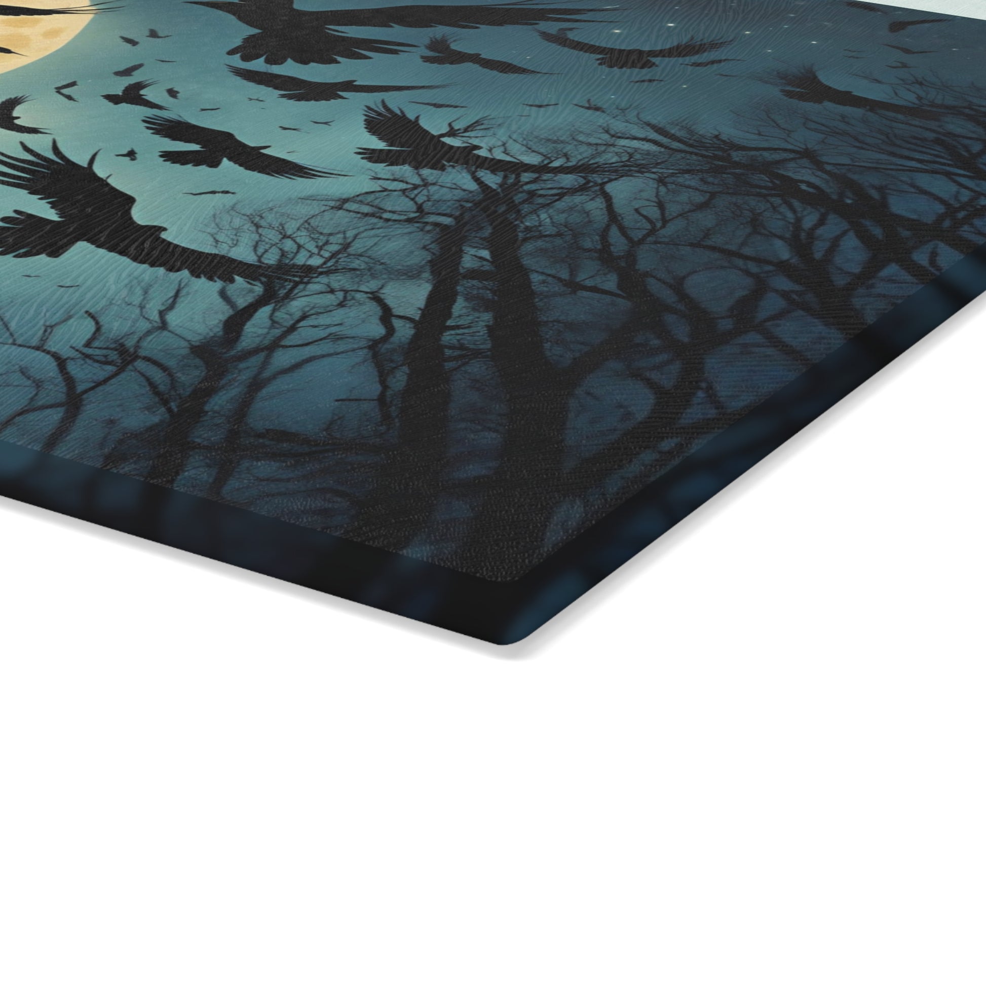 Full Moon Crows Glass Cutting Board | Dark Academia Decor