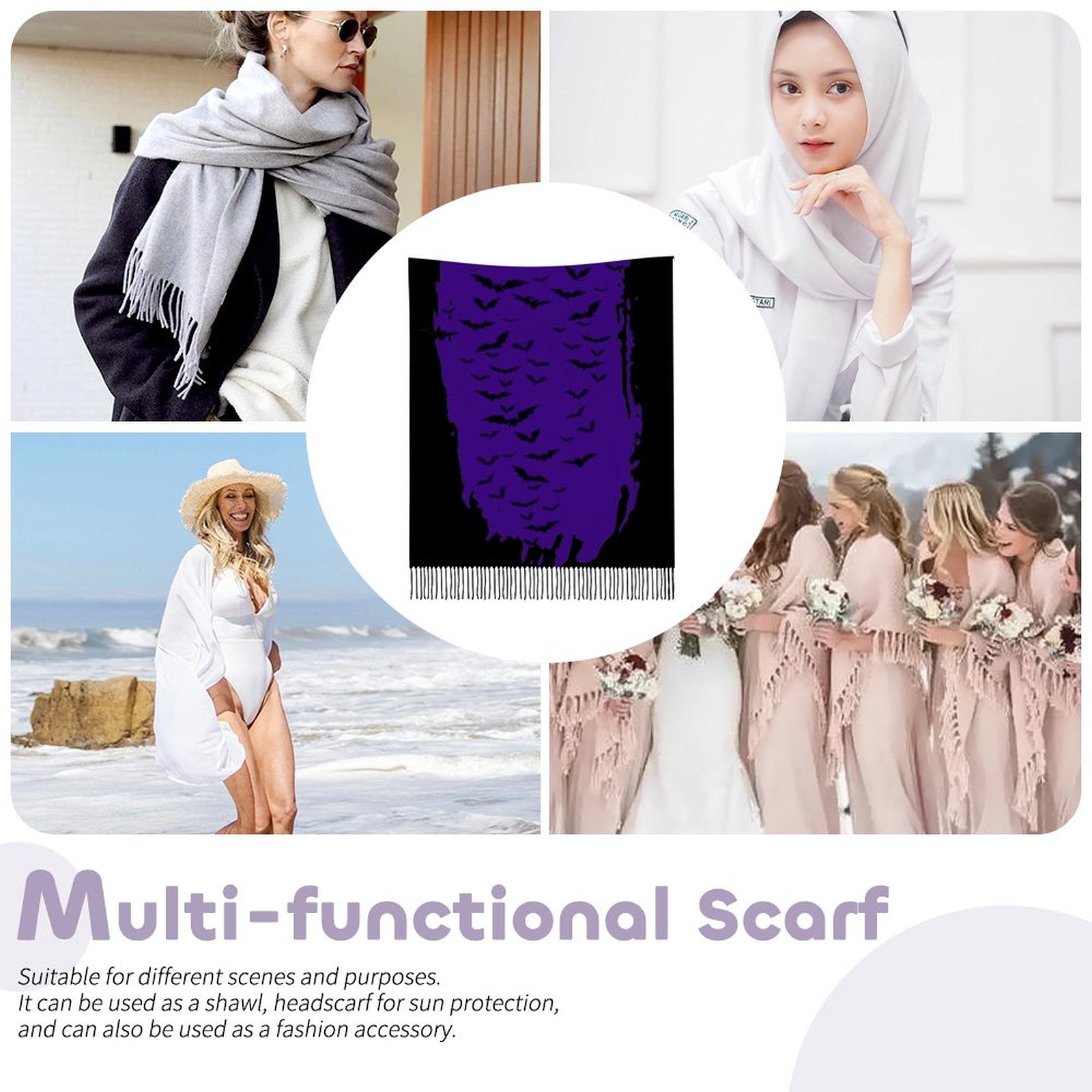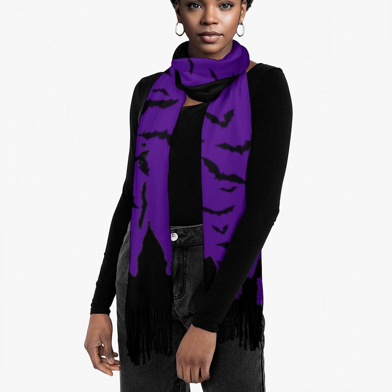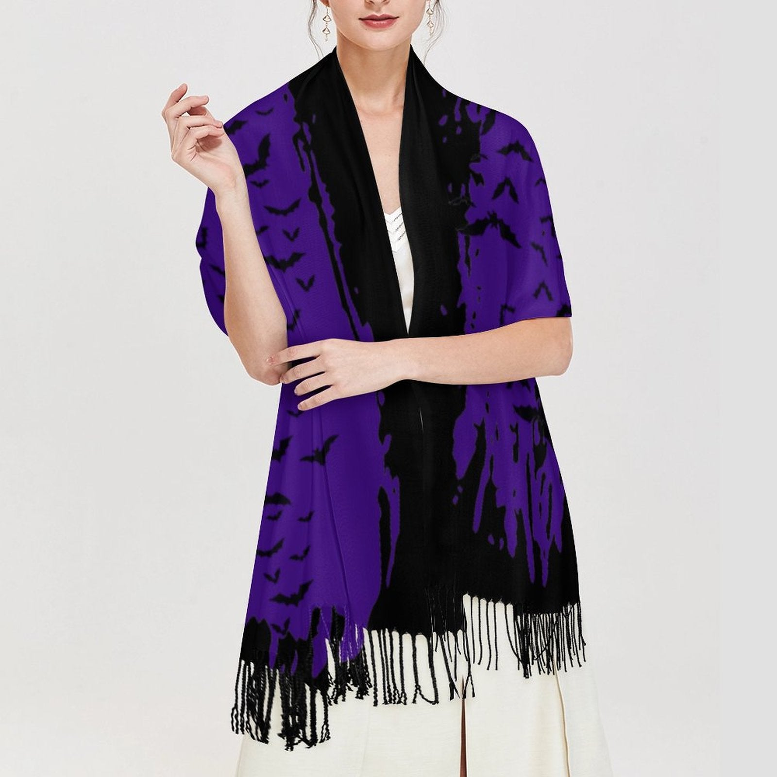 Gothic Clothing Cloud of Bats Super Soft Tassel Scarf, Halloween Scarf Bird Lover Gift Fall Fashion Scarf, Gothic Bat Fashion,Wiccan Clothes