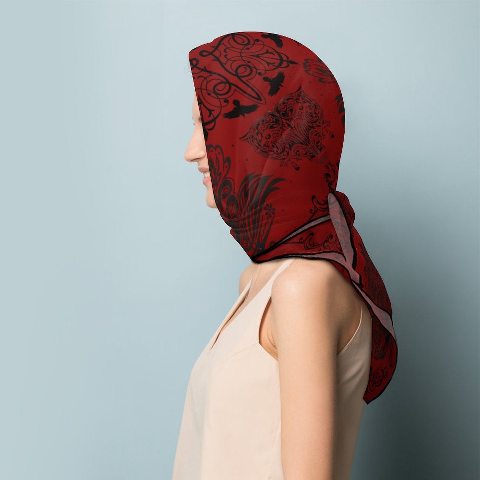 Oxblood Goth soft crow sarf, Crow printed handkerchief, Raven bandana headscarf Crow lover