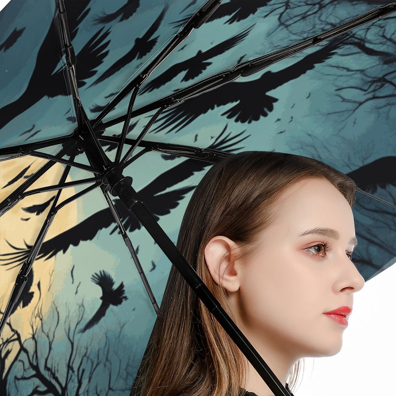 Gothic Raven Auto Umbrella: Witchy Goblincore Style