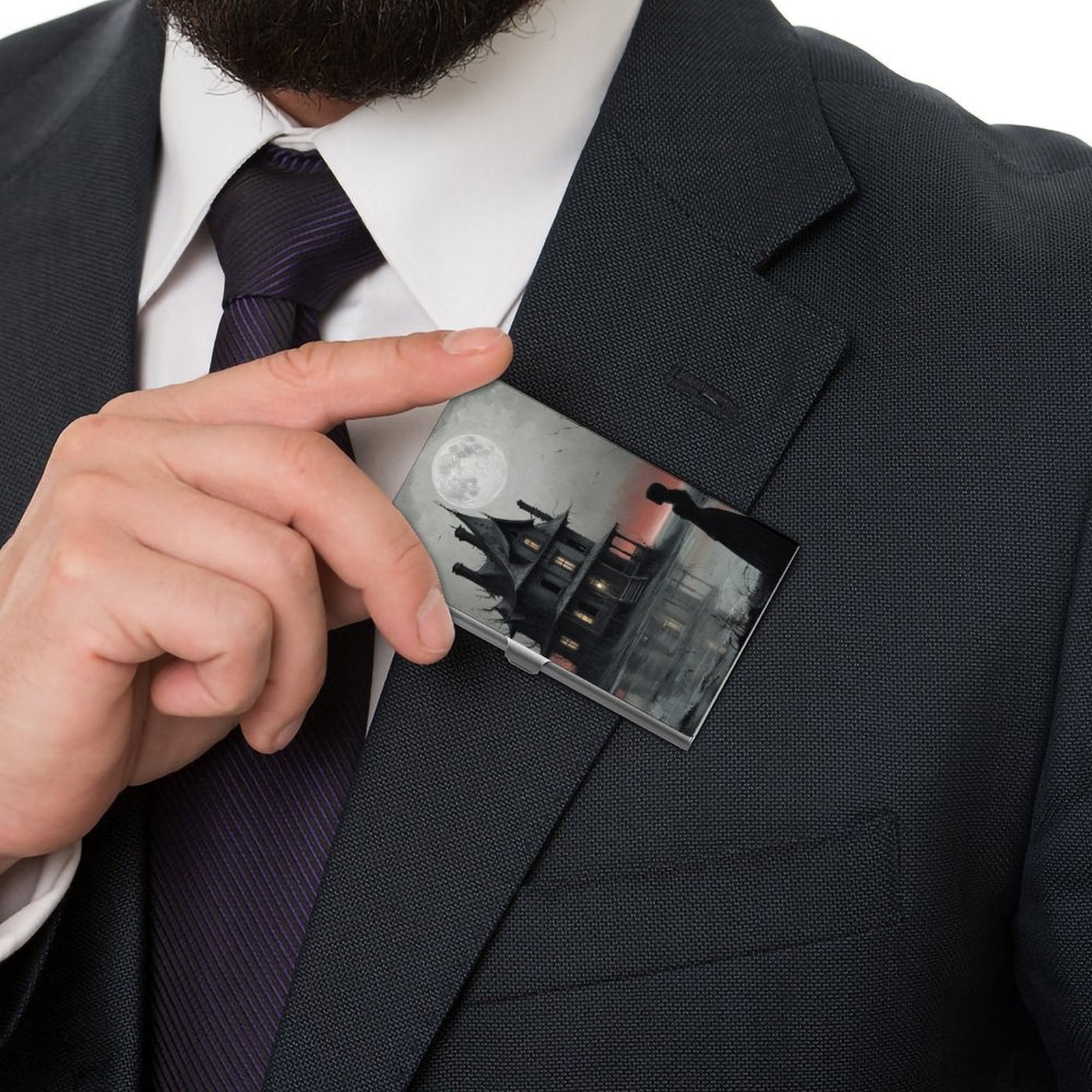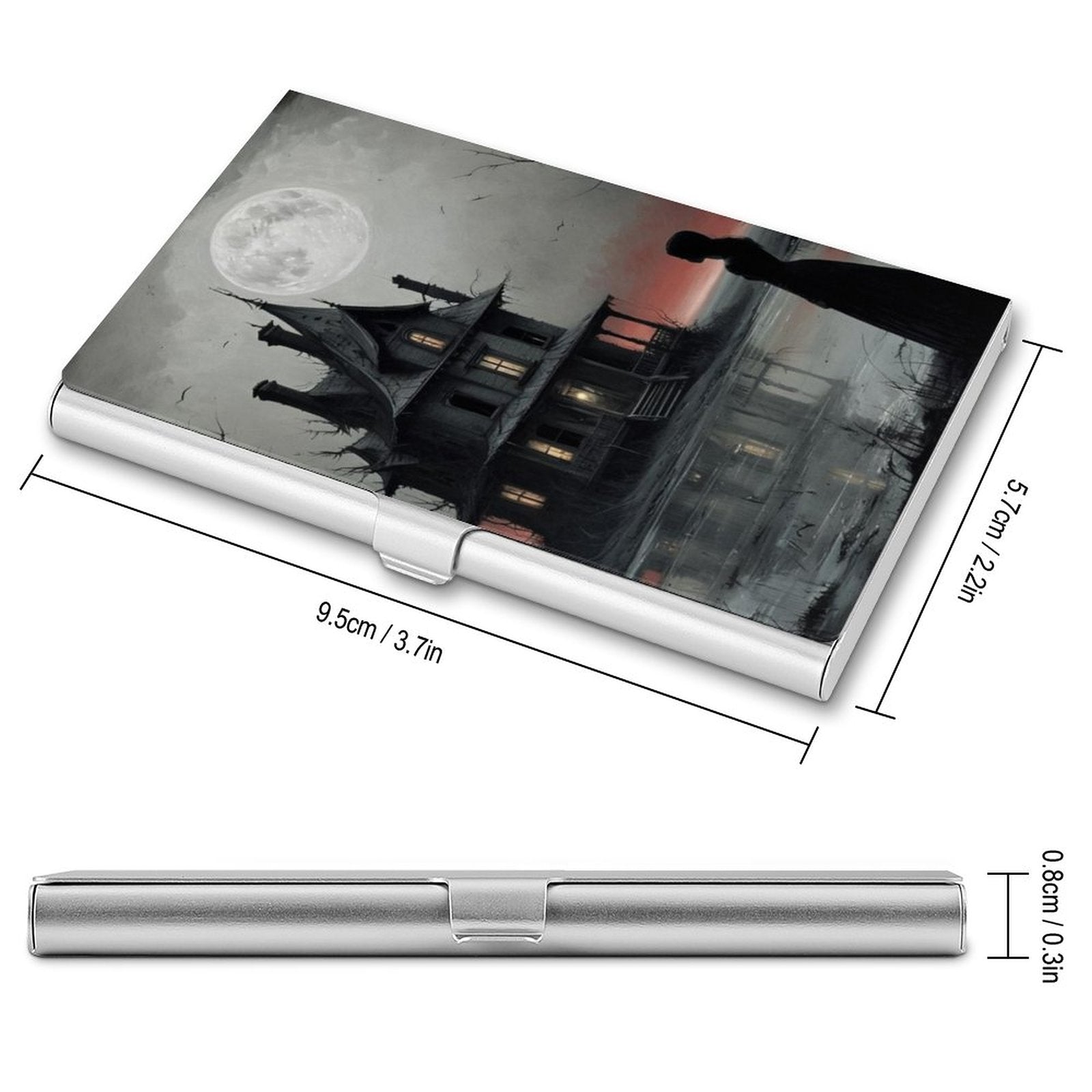 Haunted Night Aluminum Business Card Holder: Witchy Office Decor