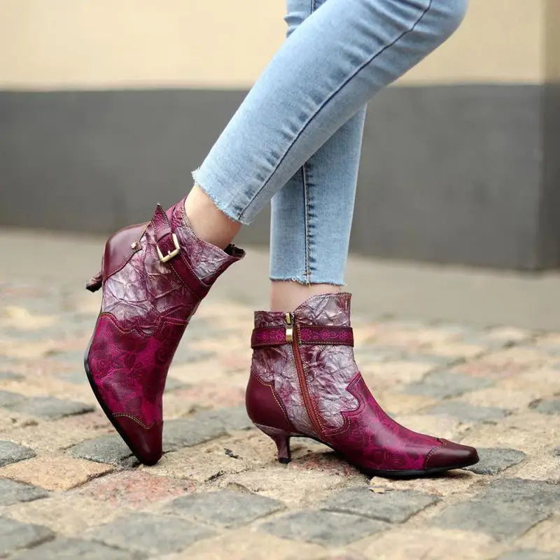 Cloth Pointed Toe Zip 2025 New Handmade Floral Print Ankle Boot