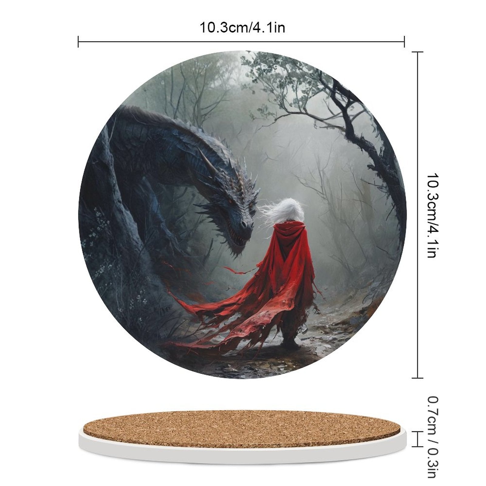 Manon Blackbeak Dragon Ceramic Coaster - Fantasy Witchy Home Decor