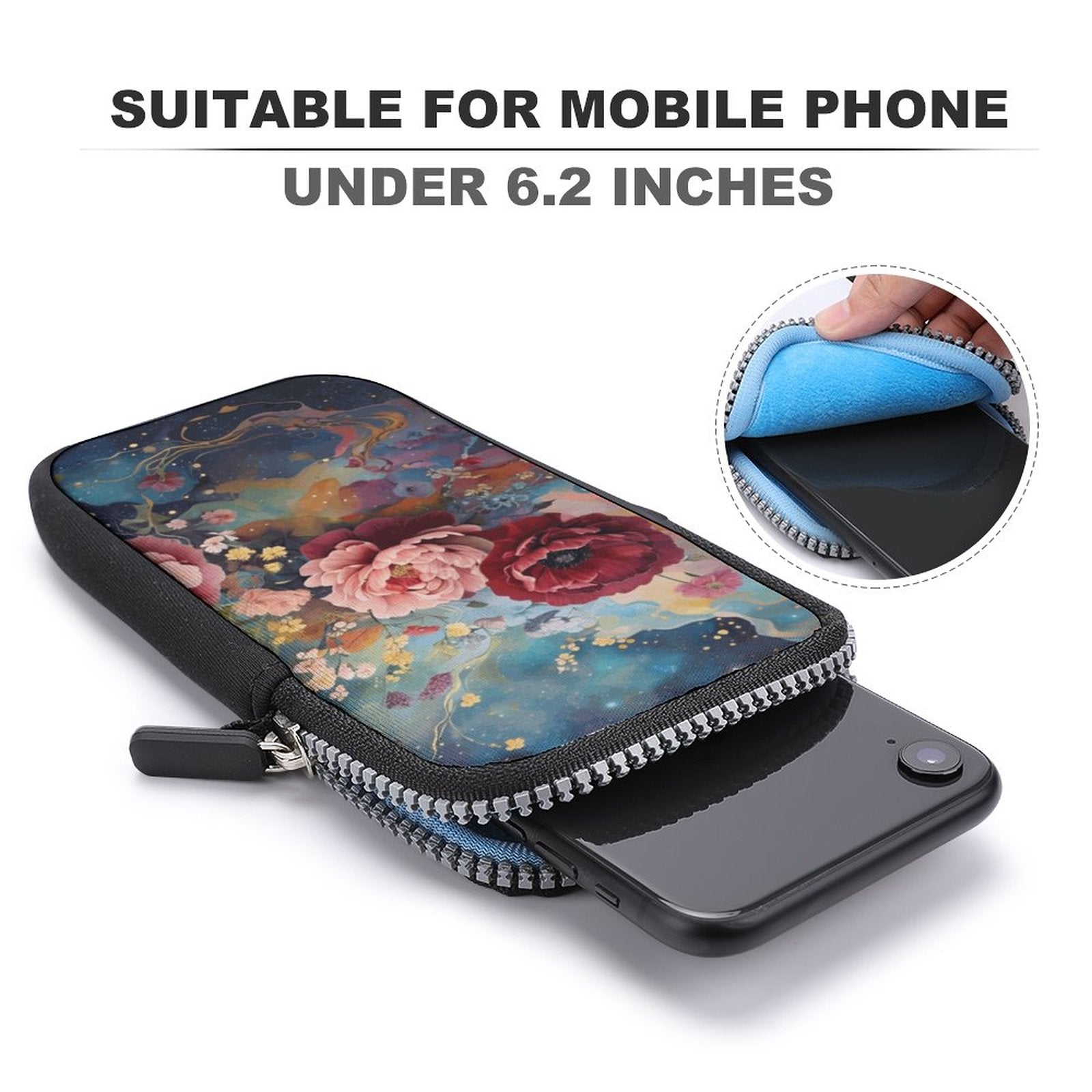 Victorian Rose Cell Phone Crossbody Pouch: Shabby Chic Neoprene Travel Bag