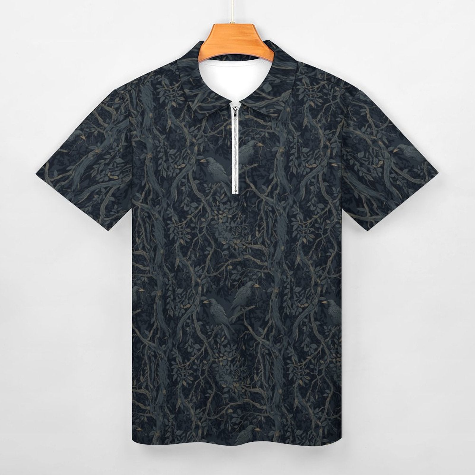 William Morris Crow Cotton Zip Short Sleeve POLO Shirt - Dark Academia Clothing
