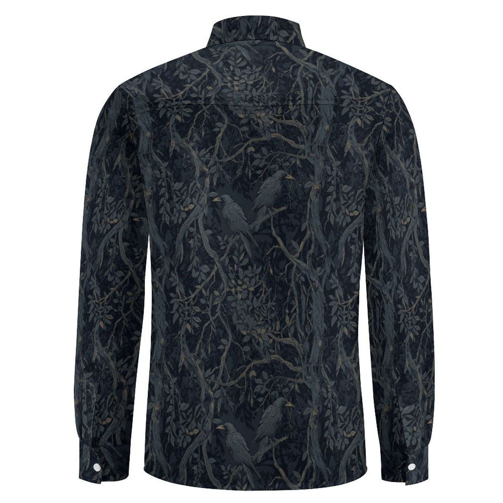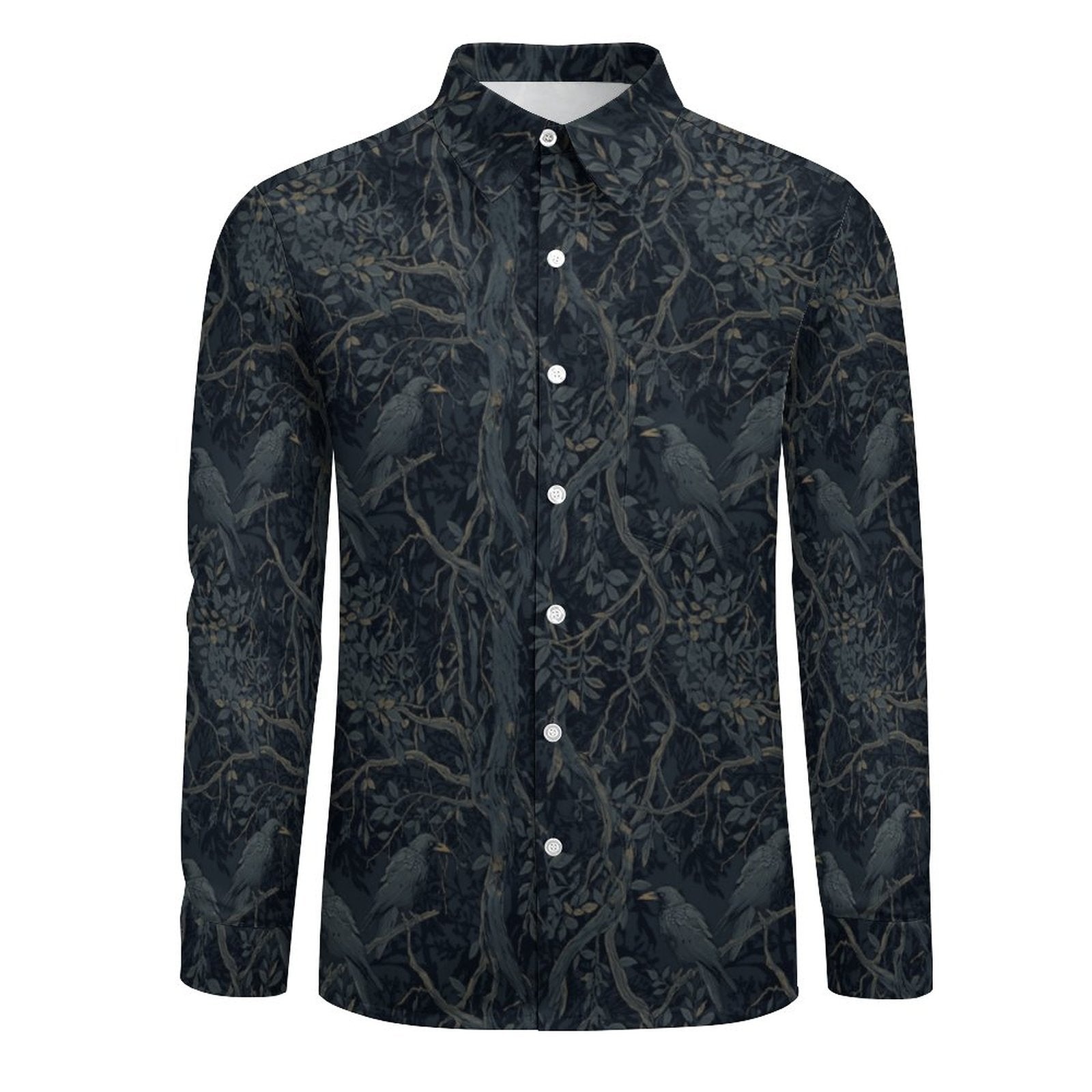 William Morris Crows Faux Linen Men Long Sleeve Shirt with Pocket LS (All-Over Printing)