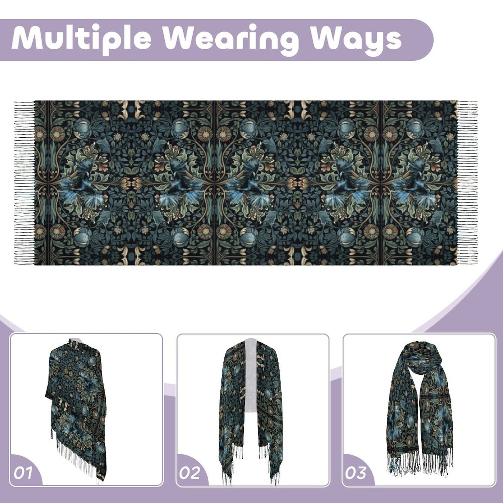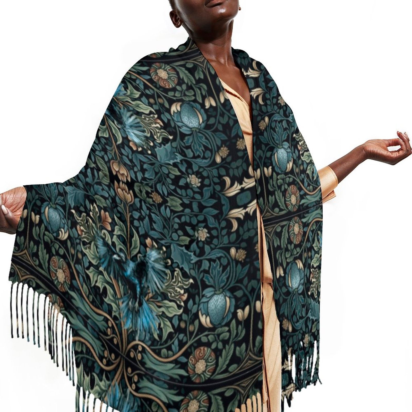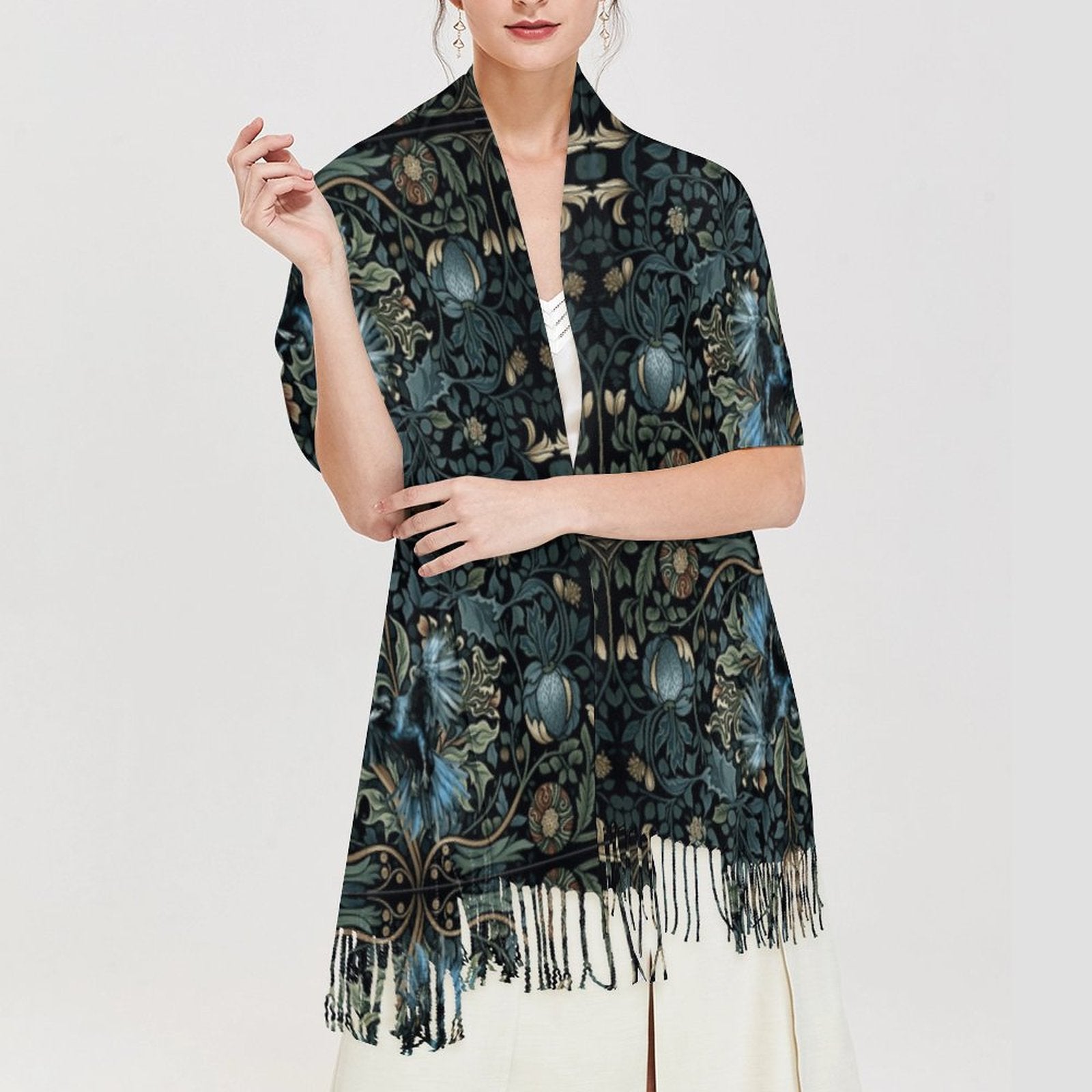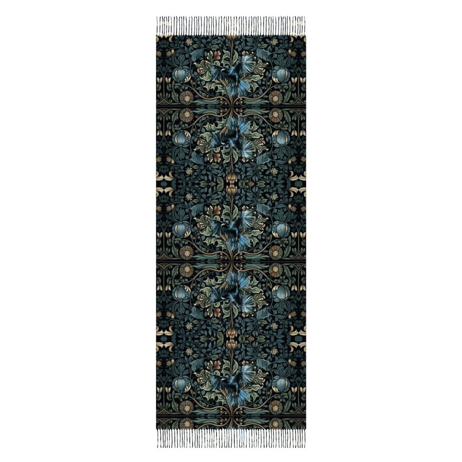 William Morris Inspired Crow Cashmere-like Tassel Scarf (All-Over Printing)