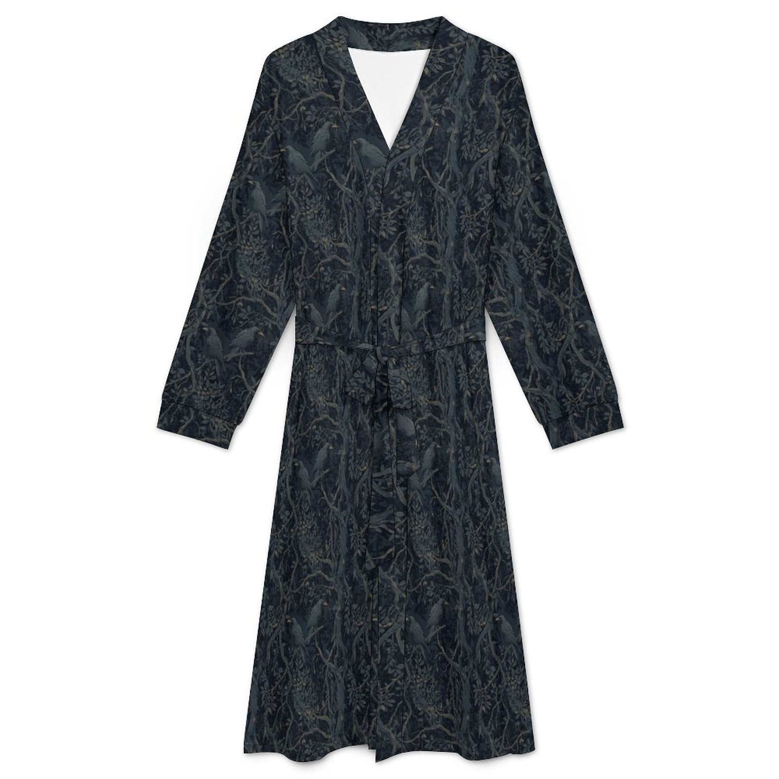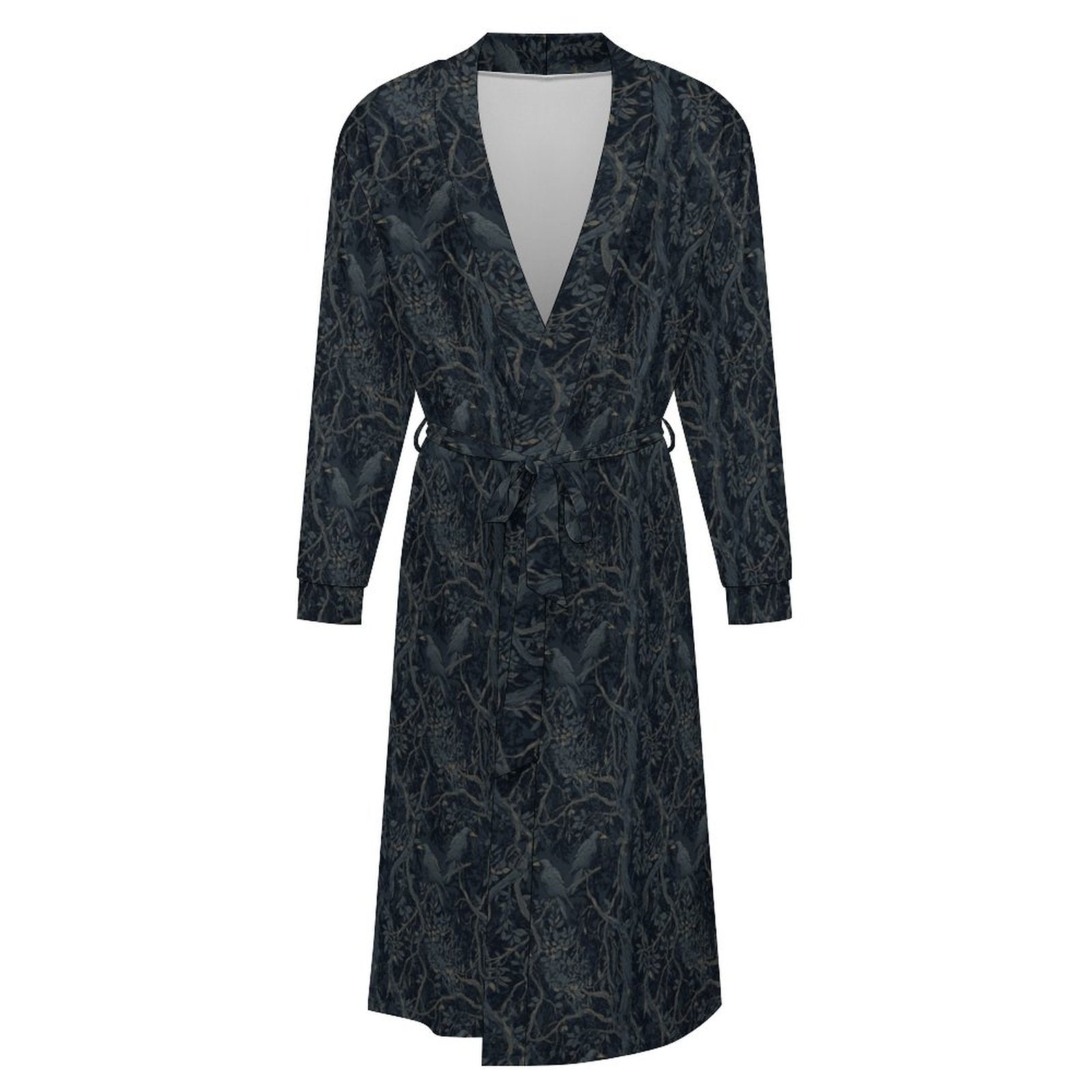 Embrace your dark academia aesthetic with this William Morris-inspired crow robe. Crafted from luxuriously soft milk fiber, this open-front design features a cinched waist belt that balances comfort with undeniable style. The loose, flowing fit lets you move freely while maintaining an air of mysterious elegance—whether you're lounging at home or making a bold statement in casual settings. Perfect for those who refuse to compromise on sophistication, even in their downtime. An ideal gift for the witchy soul who appreciates literary vibes and timeless design.
