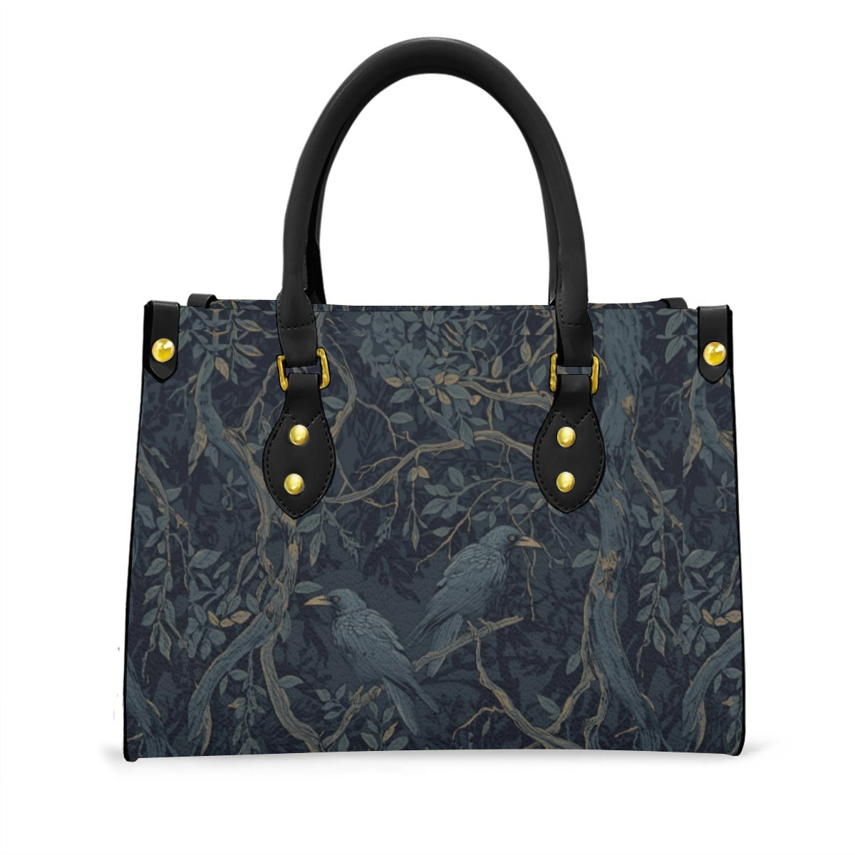 Crafted from high-quality PU Faux Leather, This bag ensures durability and a smooth texture, making it ideal for everyday use while the charming depiction of crows add a hint of whimsy and charm. These designs are inspired by William Morris Prints, evoking a sense of nostalgia and enchantment. They are not just an accessory, but a statement piece that tells a story. Perfect for those who appreciate a blend of vintage charm and contemporary style, these totes are a must-have for anyone looking to add a magical touch to their wardrobe. ✨🦉