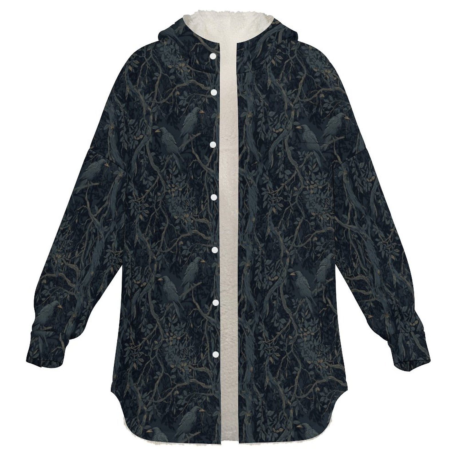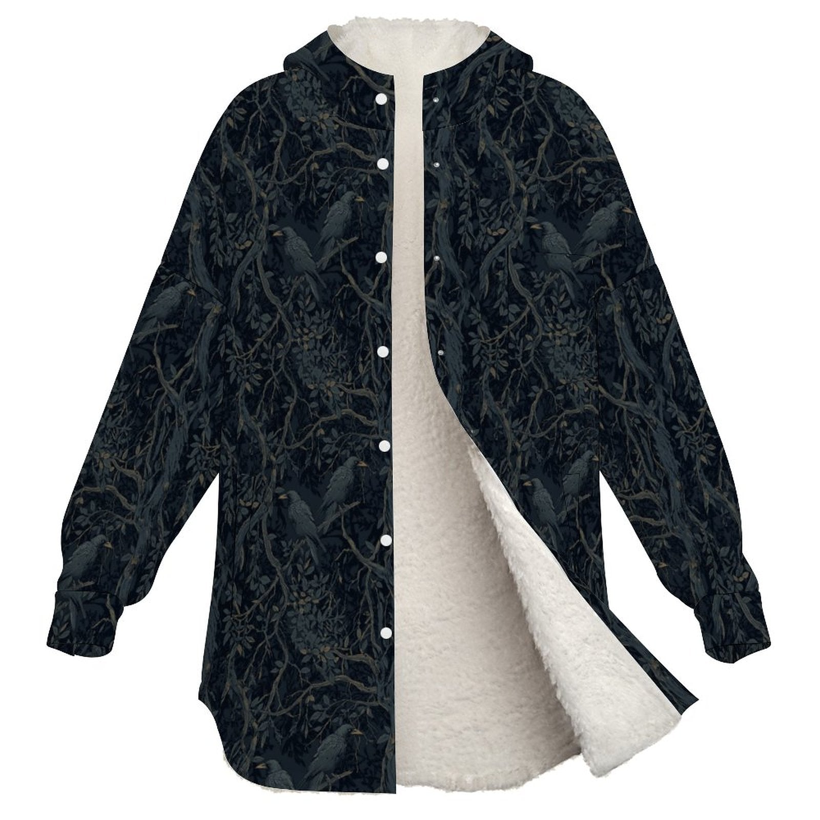 Embrace the darkness with this William Morris-inspired crow double-layer hooded top, where gothic elegance meets modern comfort. Crafted from premium polar fleece with a soft lamb fleece lining, this statement piece delivers exceptional warmth without bulk—perfect for layering through moody seasons. The sublimated design resists fading while the fabric resists shrinking, pilling, and wear. Quick-drying and easy to care for, it maintains its thermal performance even in damp conditions. Bold, wearable art for those who dare to dress their truth.