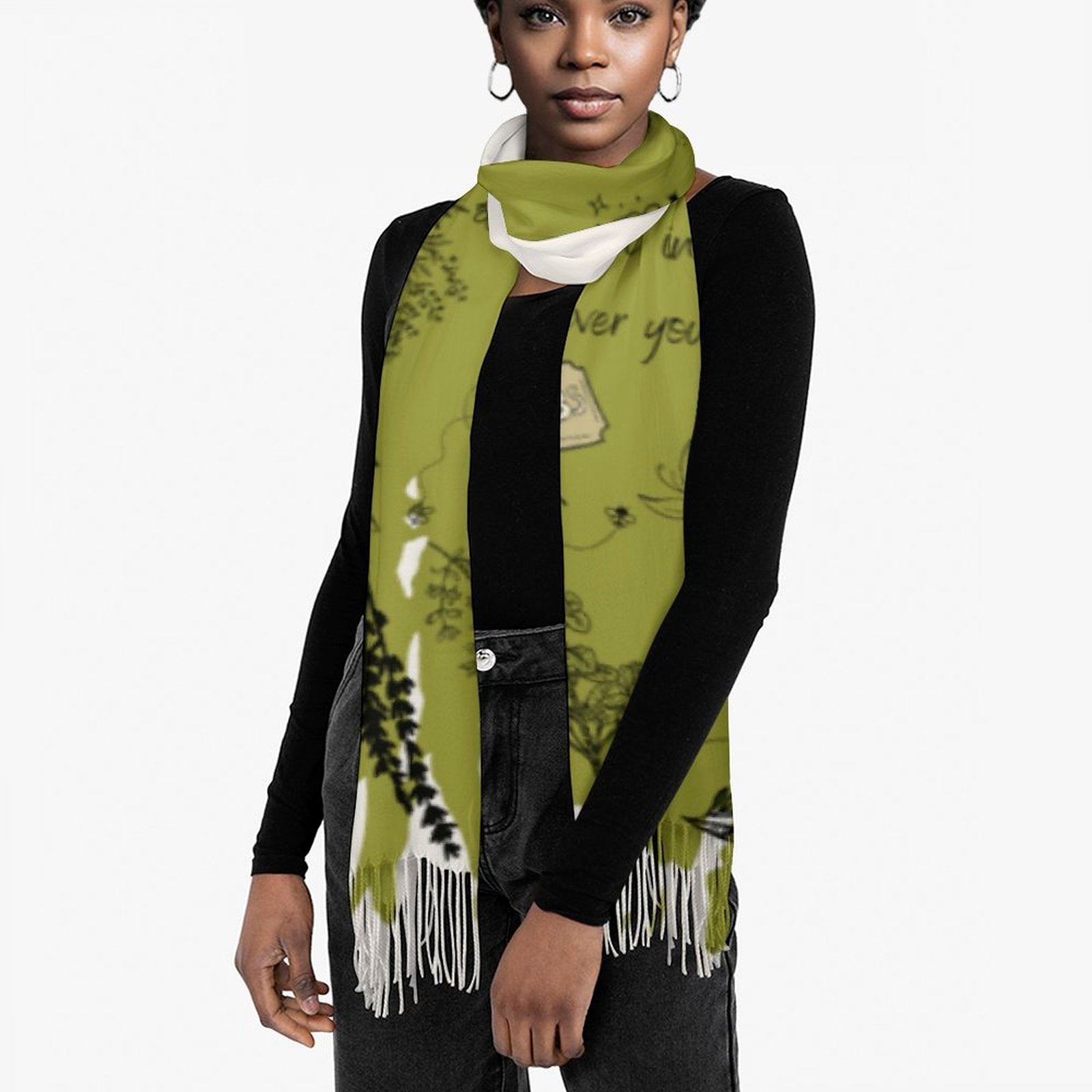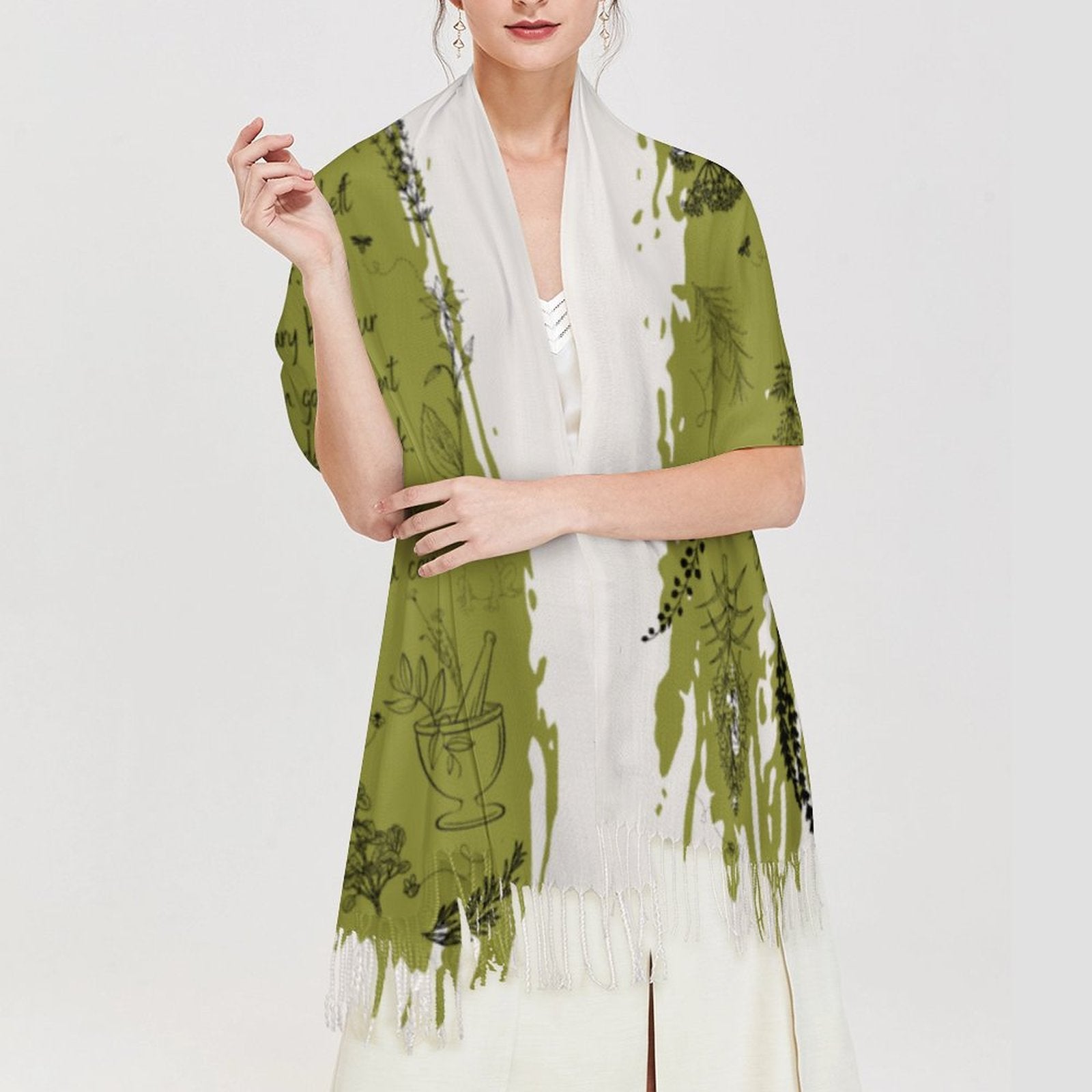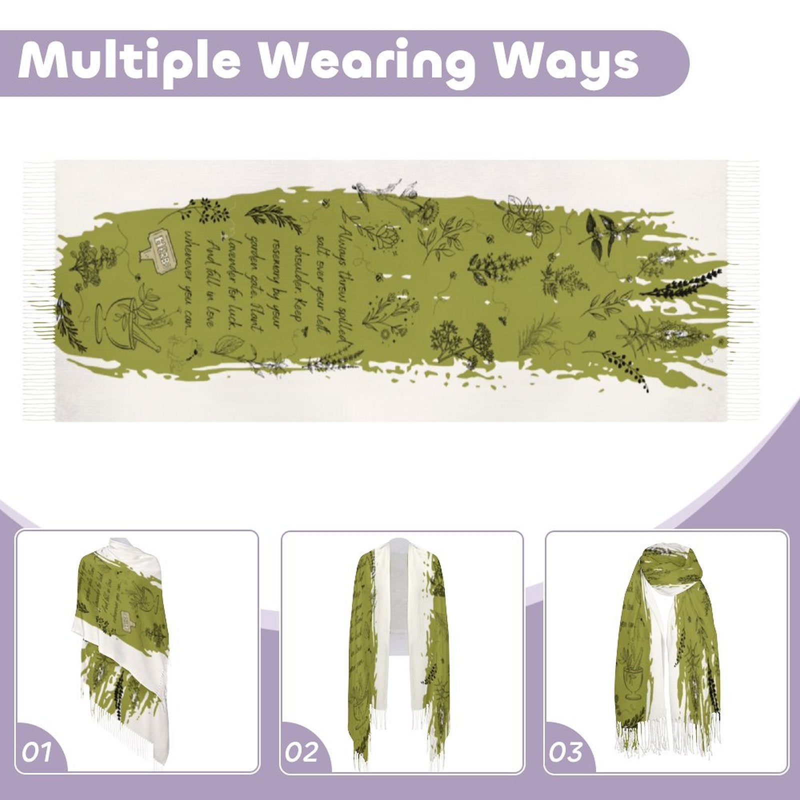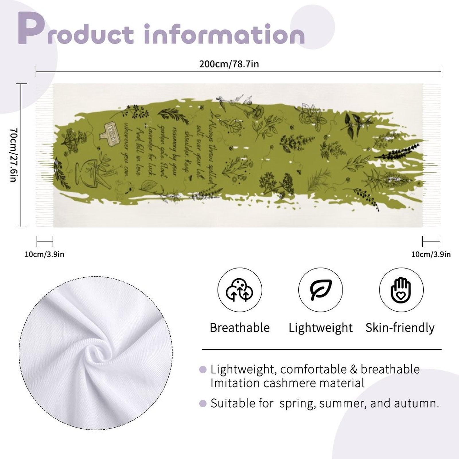 Witchy Herbs Poem Cashmere-like Tassel Scarf (All-Over Printing)